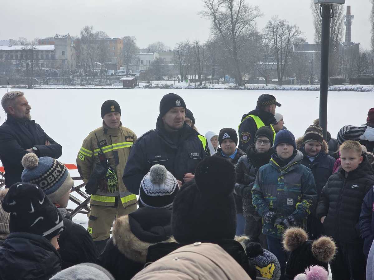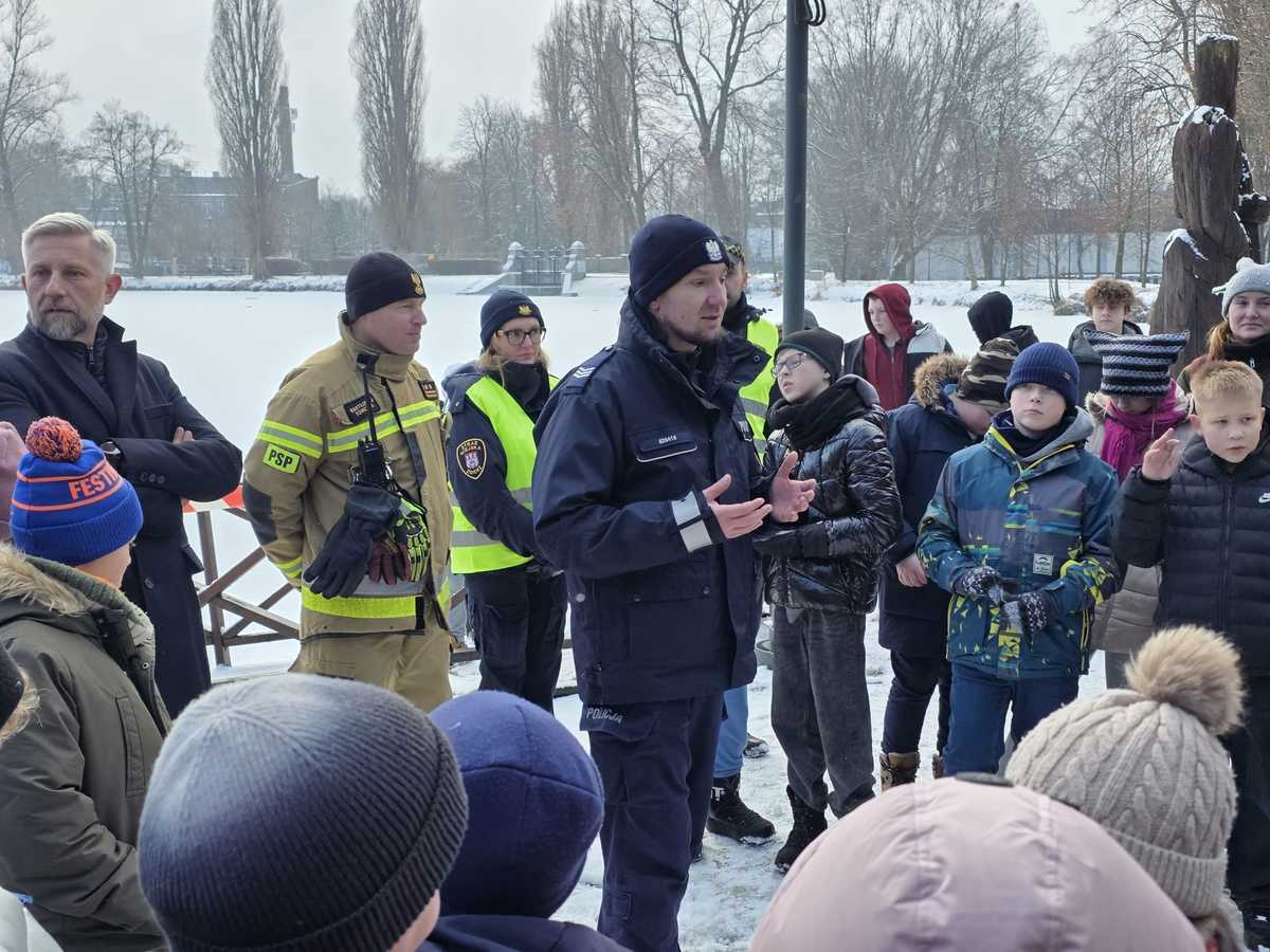 Rozmowy z dziećmi i młodzieżą, na temat bezpieczeństwa podczas zbliżających się ferii zimowych, to doskonała okazja aby zaznajomić naszych milusińskich z podstawowymi zasadami, które mogą okazać się niezwykle pomocne podczas przerwy od szkolnych obowiązków. Spotkania te, nie muszą odbywać się jedynie w szkolnych klasach czy świetlicach. Atrakcyjność przekazywanych informacji bywa bowiem bardzo ważna. Tak było 28 stycznia 2026 roku, gdy w Parku Miejskim w Zgierzu, Policjanci wspólnie z funkcjonariuszami Państwowej Straży Pożarnej, przekazywali najmłodszym jak zachować bezpieczeństwo podczas ferii. Uczniowie zgierskich szkół dowiedzieli się, że każdy lód może się załamać, jak pomagać osobie, która wpadnie do lodowatej wody, oraz o konieczności noszenia kasków i ochraniaczy podczas sportów zimowych, elementów odblaskowych oraz jak postępować gdy zgubimy się w tłumie. Ferie w naszym województwie rozpoczynają się już w najbliższy poniedziałek, więc funkcjonariusze nie ustają w przeprowadzaniu działań profilaktycznych. Już dzień po spotkaniu w Parku Miejskim, 30 stycznia, obecni byli w Szkole Podstawowej nr 1 w Zgierzu, gdzie zorganizowano pogadankę dotyczącą przypomnienia przepisów ruchu drogowego i bezpiecznego wypoczynku. Dzieci były zainteresowane przekazywanymi informacjami, a poprzez swoją aktywność pokazywały, że ich wiedza i świadomość jest niezwykle imponująca.